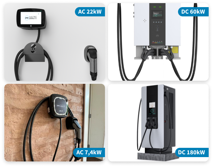 Soluções de recargas normal (AC) e rápida (DC) com alta tecnologia e fácil utilização.
